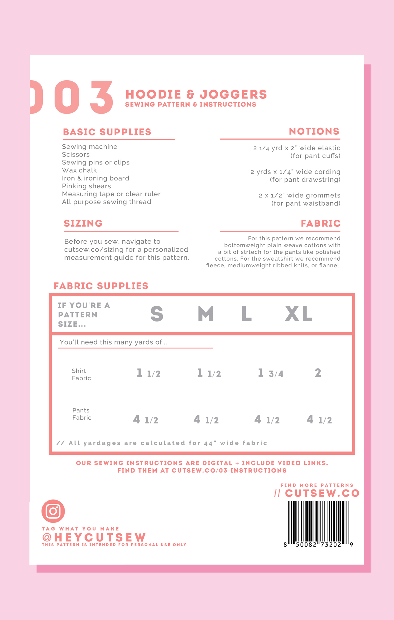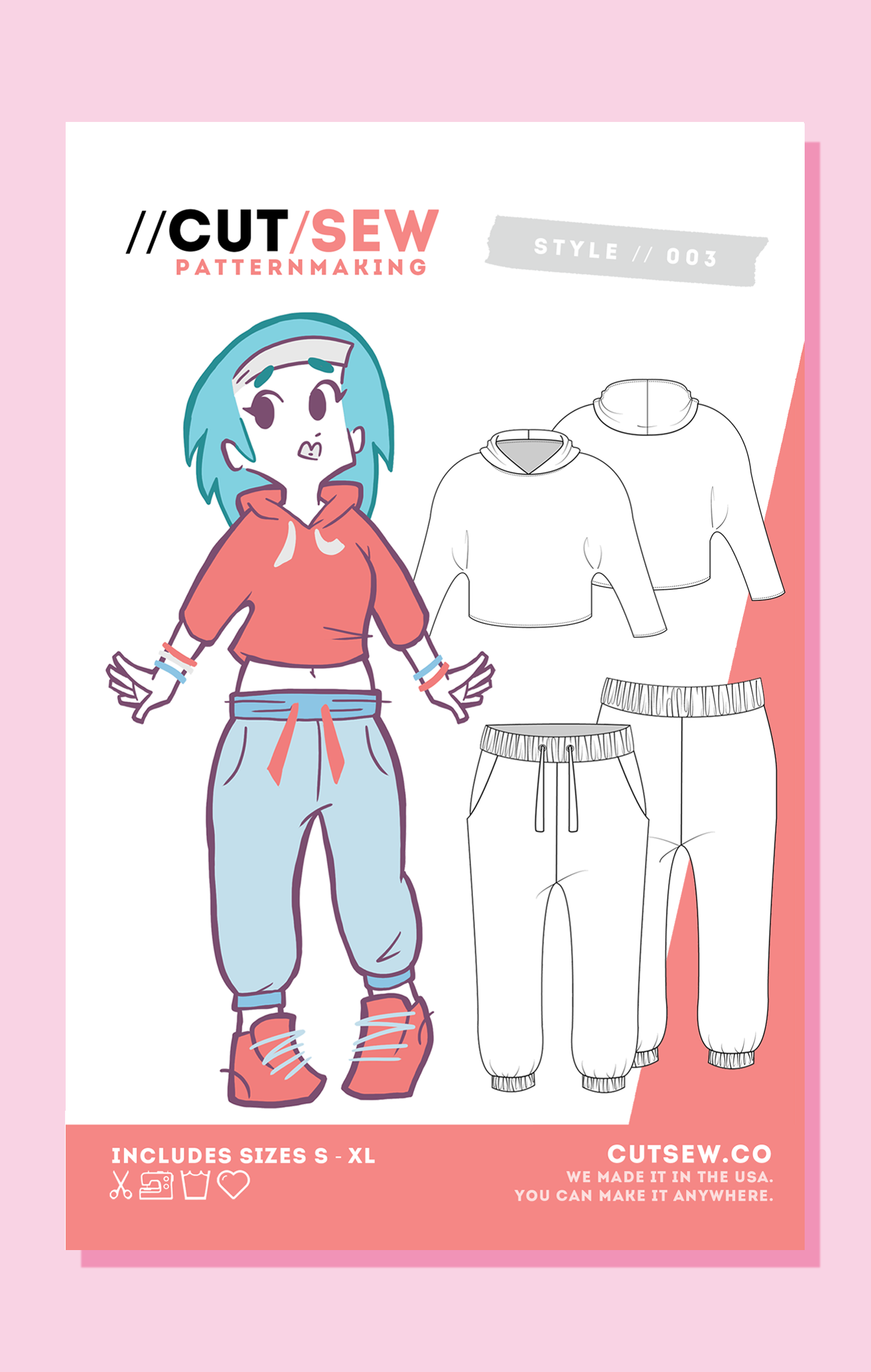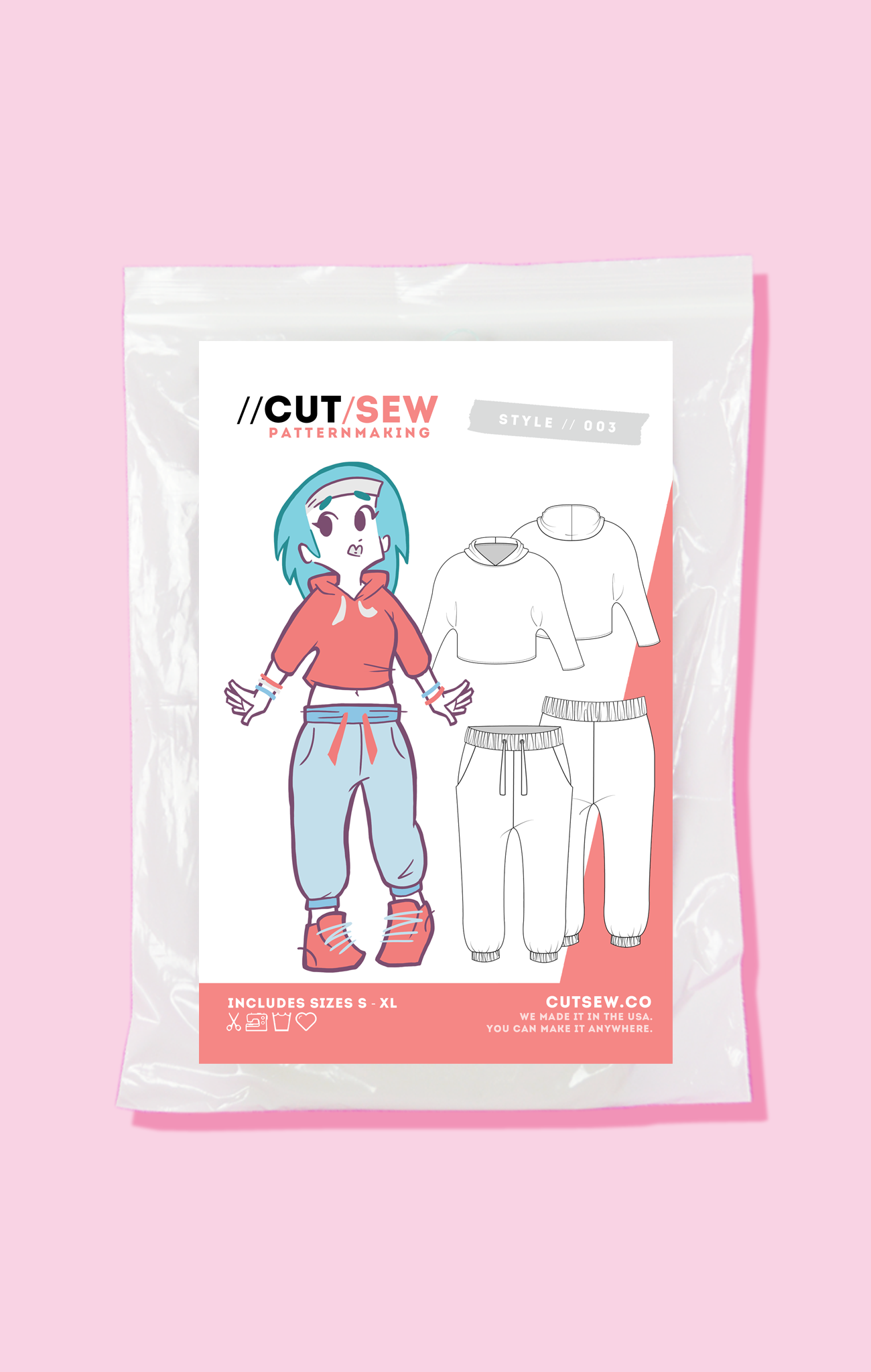 Dress for the job you want, and maybe that job is a K-pop star. This pattern features two garments: drop crotch joggers with included pockets and elastic closures on the ankles & waist, as well as a cropped batwing sweatshirt with an attached hood. Want a less revealing top? Use our included pattern adjustment instructions to lengthen it to your hearts desire.