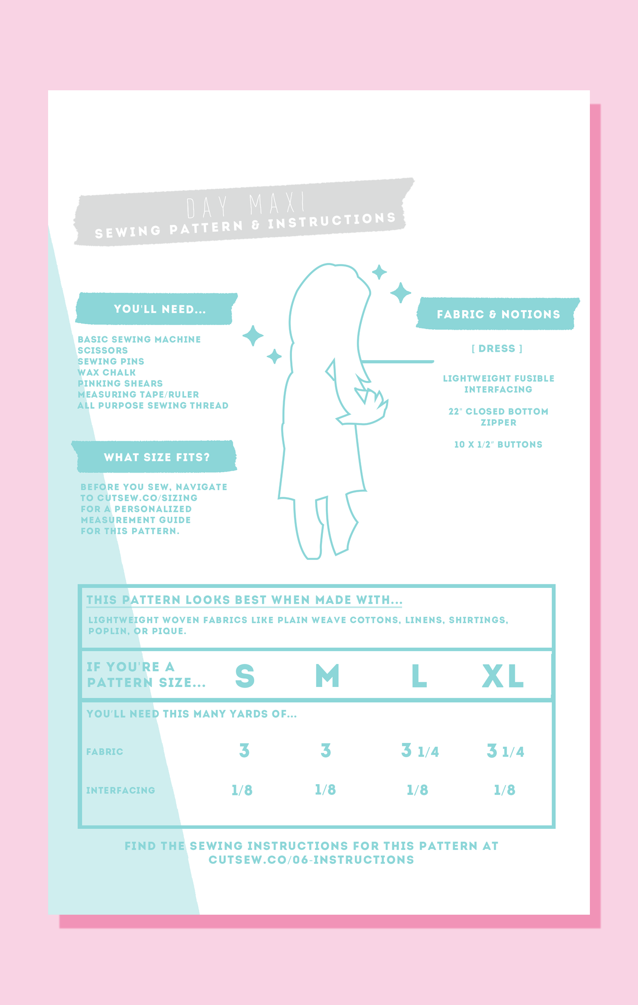 All CUT/SEW patterns are printed on sturdy 30 lb bond paper and packaged in reusable zip-top bags for easy storage. Each pattern includes sizes S-XL and can be modified using the included adjustment instructions to fit up to a US dress size 20.