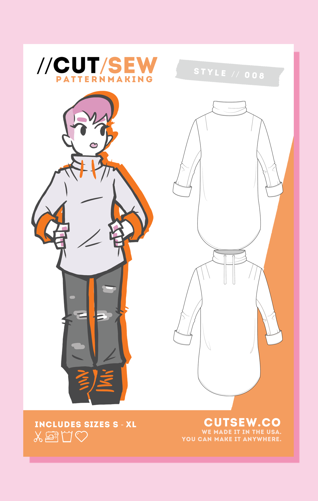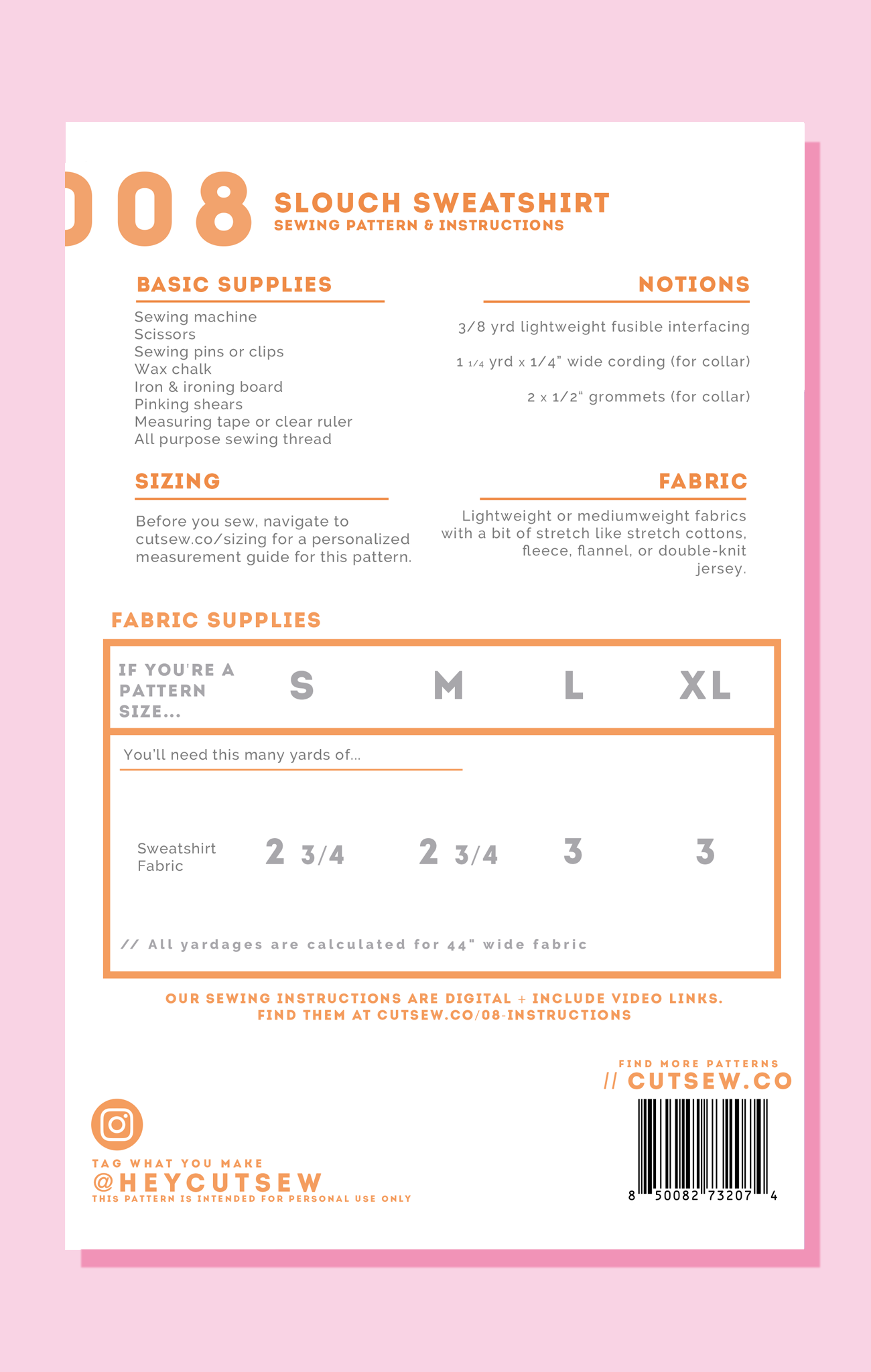 Find the full size chart for this pattern at cutsew.co/sizing.