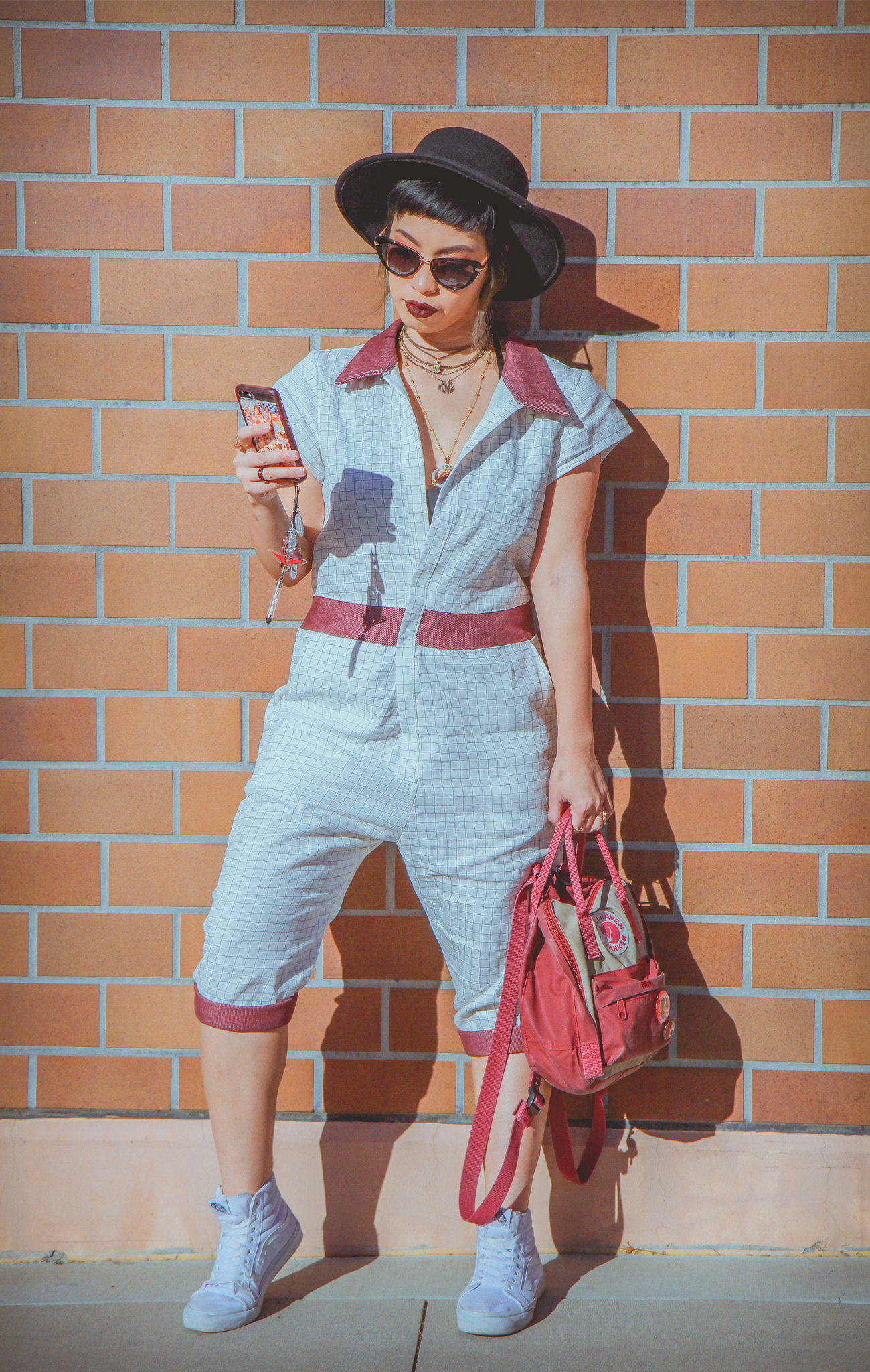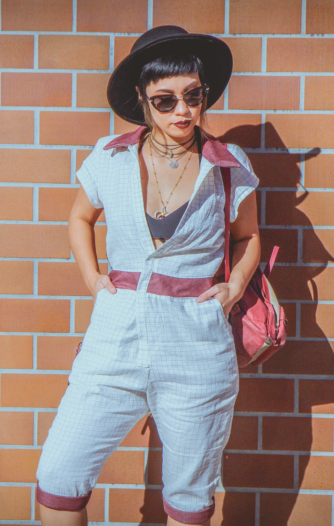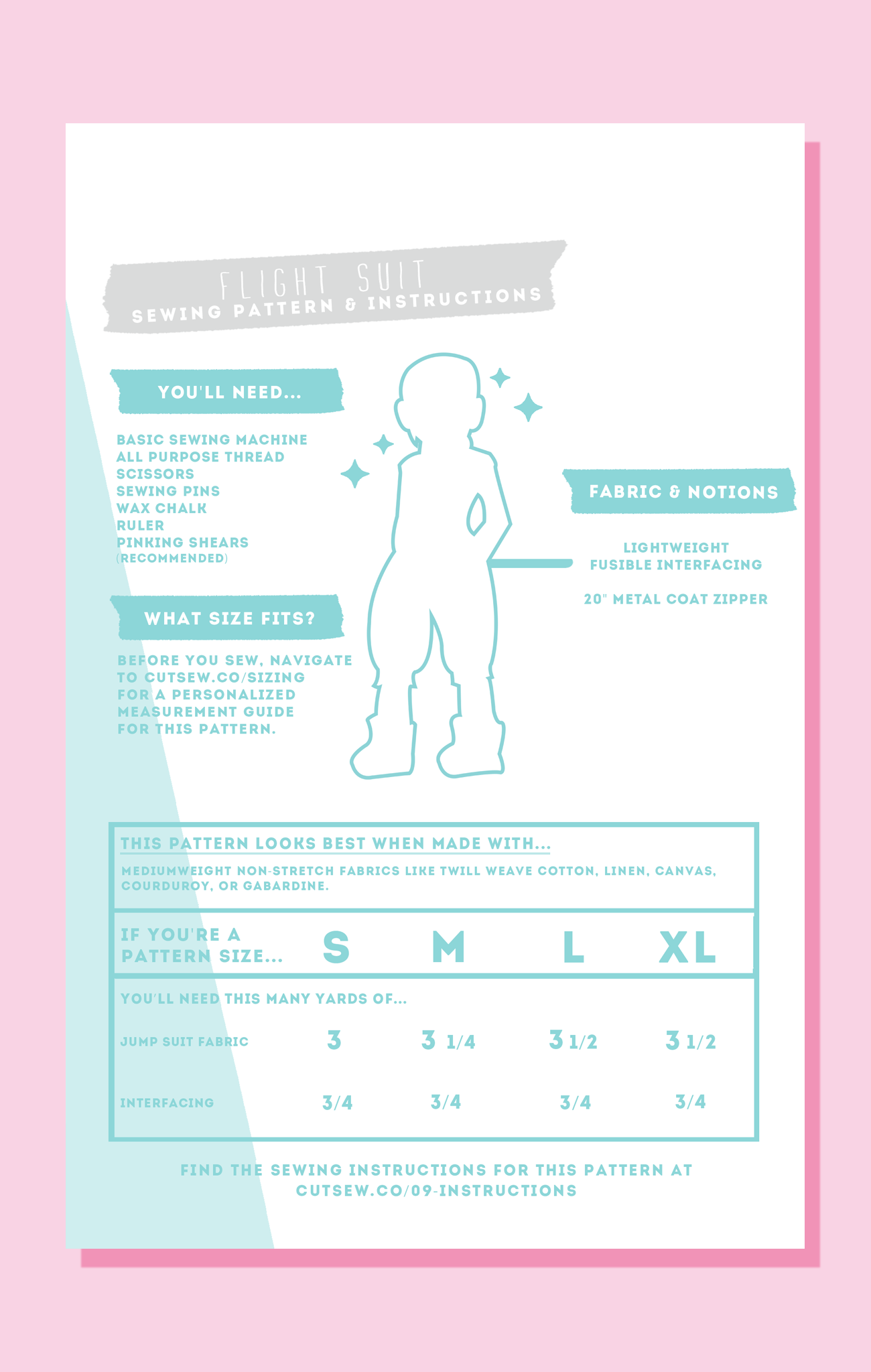 Suit up! This one-piece jump suit features capri-length pants, a lapped center front zipper, and easy to sew front pockets to add some style to all of your car repair, test pilot, or street fashion needs. Adjustment instructions are included on how to lengthen or shorten the suit to accommodate varying heights.