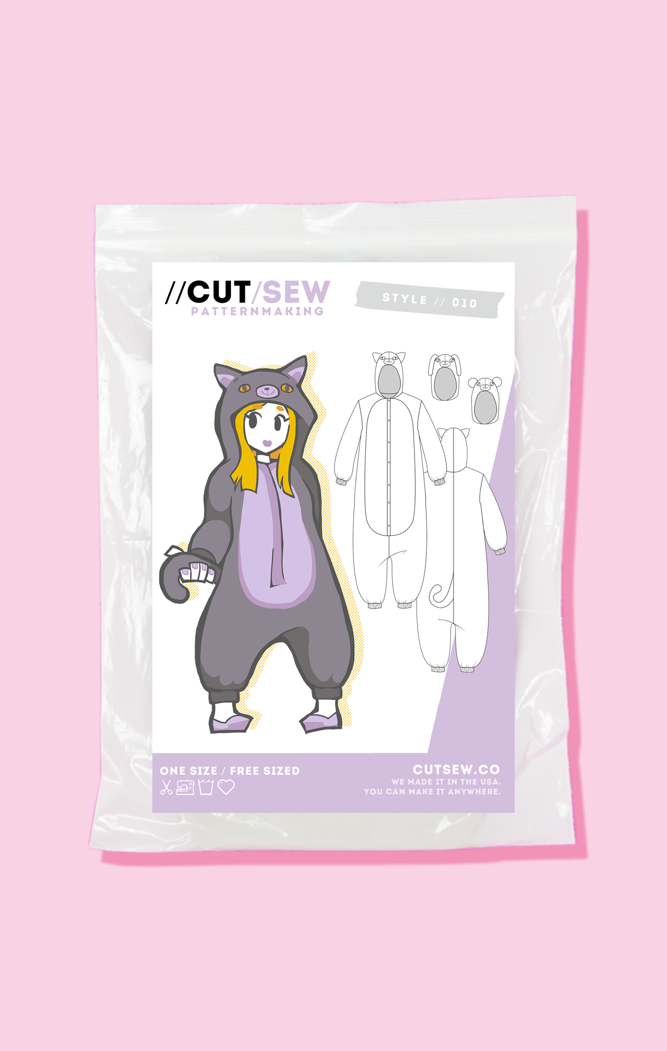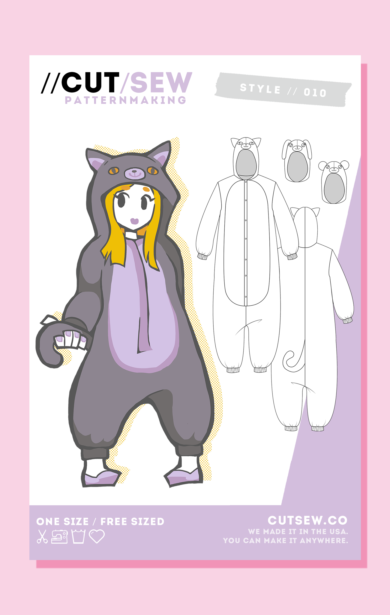 This super comfy kigurumi pattern includes a free-sized pajama body which can fit up to a 3XL body. It features a customizable hood with options included for a cat, rabbit, and bear, and the body features a snap center front closure and elastic cuffs on the wrists and ankles. Our included instructions offer tips and tricks on how to customize the hood and tail for just about any animal or character, so it can be used for both specific cosplay or just comfy pajamas. Out of the package this pattern is intended to fit up to a 5' 8" tall body, but can be modified for taller bodies using the included adjustment instructions.