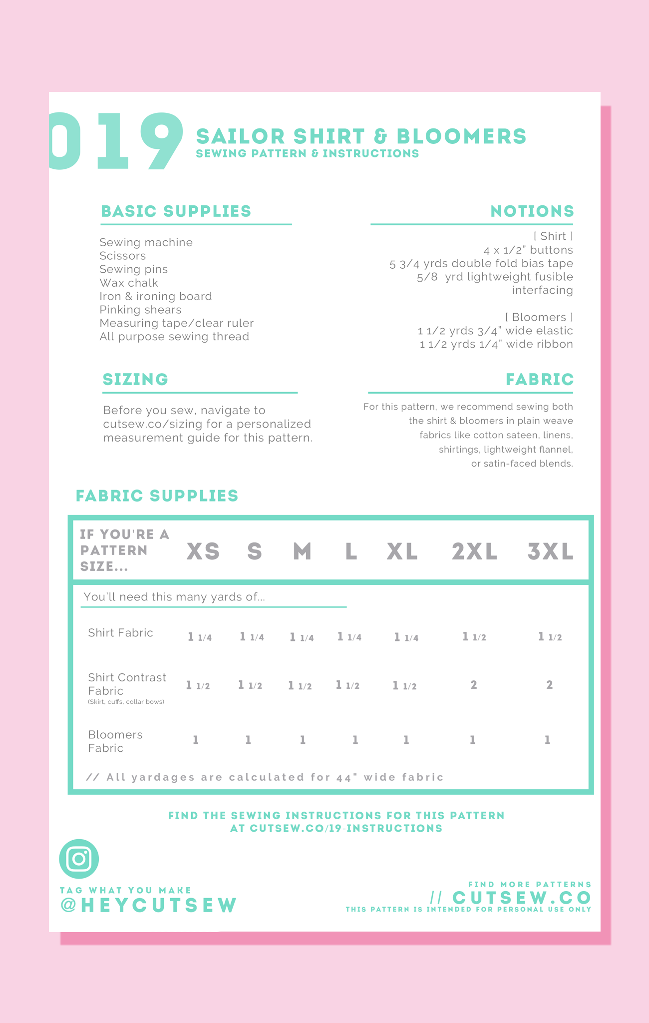 Japanese-inspired but also street fashion ready, this pattern features a seifuku style blouse with a button front closure and top stitched ribbon trim. Add a cozy pair of ribbon-cinched bloomers, made customizable for every shape with an elastic waistband, and you've got a look that reps a kawaii aesthetic while still being casual enough for everyday wear. The top falls at regular t-shirt length out of the package, but can be lengthened into a full dress using the included adjustment instructions. Please note: the bloomers run extra short for a juniors-inspired look. Looking for longer bloomers? Check out our 037 // OUJI SAMA pattern.