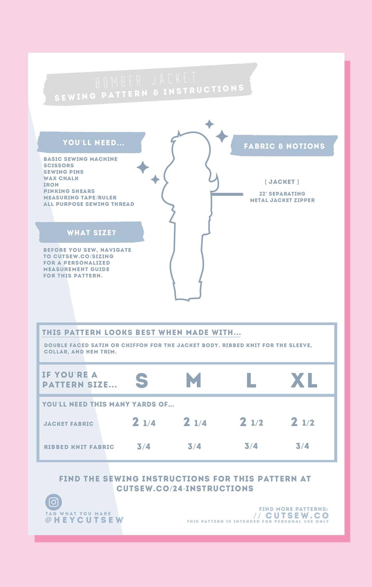All CUT/SEW patterns are printed on sturdy 30 lb bond paper and packaged in reusable zip-top bags for easy storage. Each pattern includes sizes S-XL and can be modified using the included adjustment instructions to fit up to a US dress size 20.