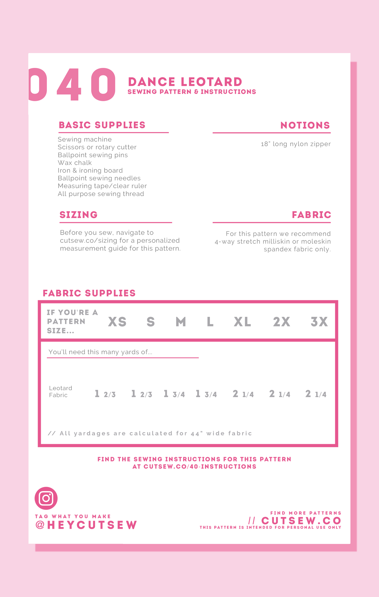 A cosplay staple and a fashion LQQK, this dance-style leotard consists of no darting or style lines for extra easy sewing. Two options are included: one with and one without sleeves, and it also features a simple fitted collar. For optimal fit, this pattern is for use with 4-way stretch milliskin spandex fabric only.