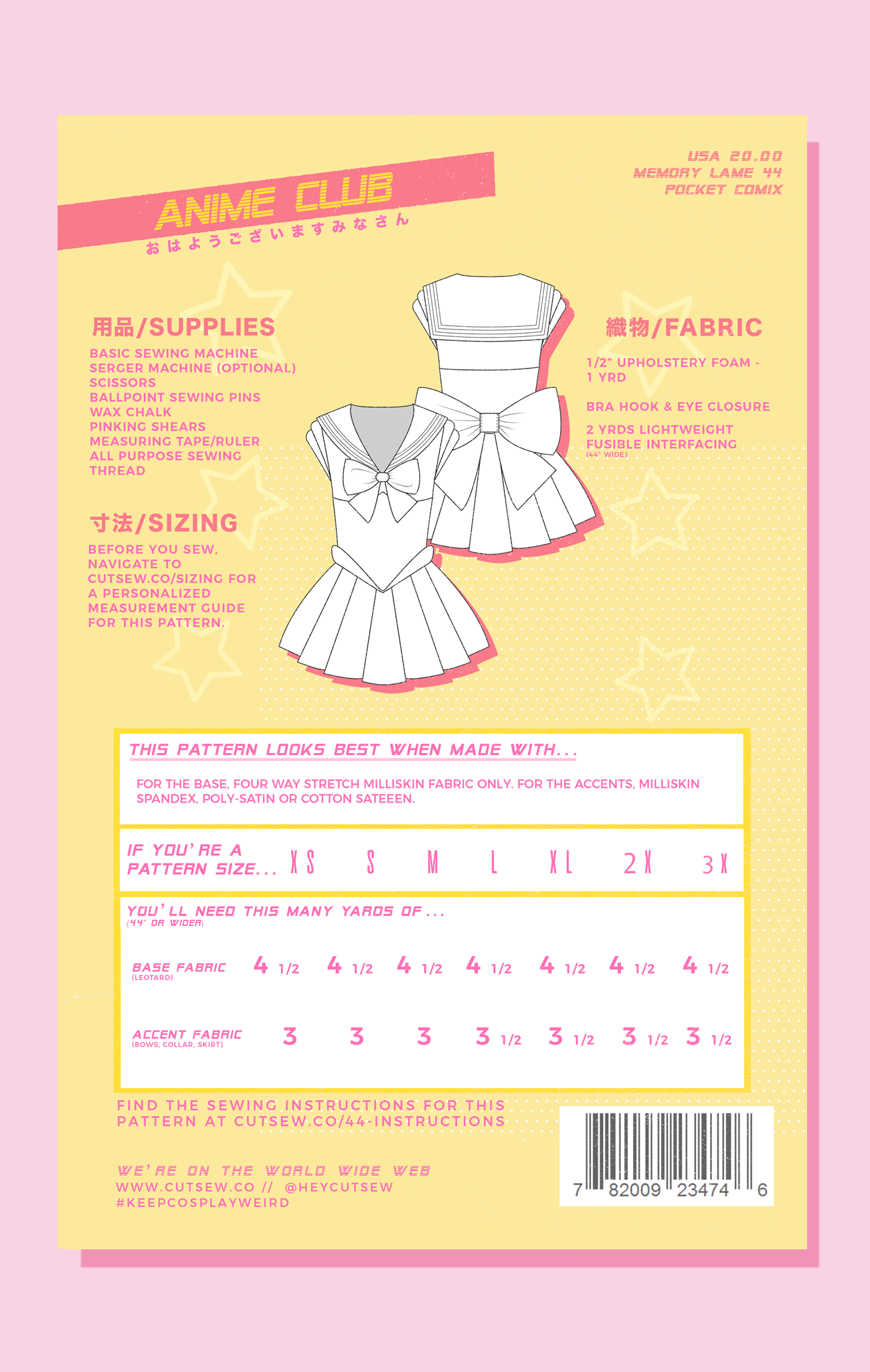 Don't show up to anime club without this cosplay staple. Our all-in-one leotard pattern features a sailor collar, under bust style lines, a knife pleated skirt, and crotch closure for a seamless look. Add extra oomph with hip and shoulder foam rolls and two big bows, because let's be real what's 90's anime without big bows?