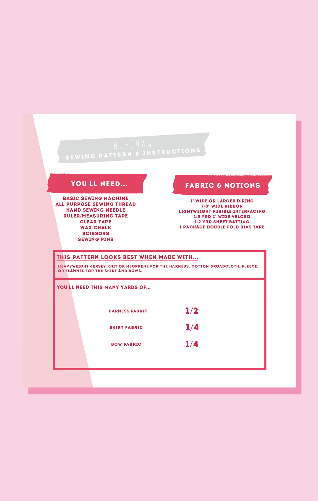 Who's a good boy? This digital download sewing pattern will transform your fur baby into a moon princess, slice of life shoujo protag, or just the cutest little doggo (or unhappy cat) in a dress. It features an all-in-one harness with attached pleated skirt, collar & bows, and includes a built in D-ring for attaching a leash. Henshin!