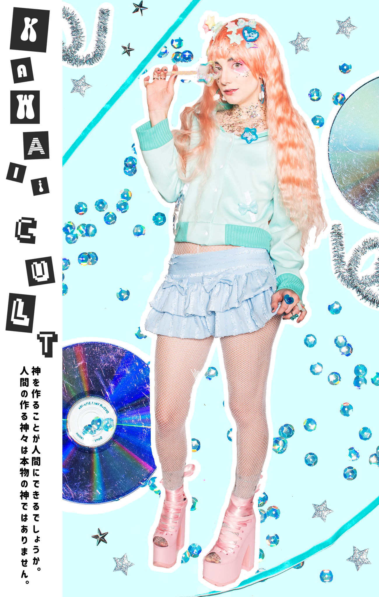Model's wig provided by our partners at Arda Wigs & tights provided by our partners at We Love Colors. Accessories provided by Whimsy Kei Shop.