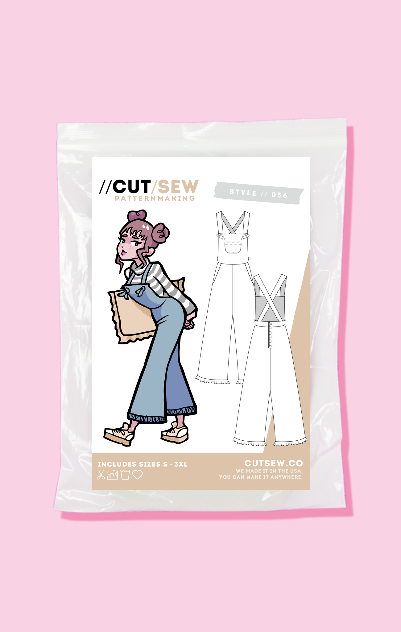 This overall-style playsuit features an oversized fit inspired by Japanese street fashion with cropped, wide-legged pants. Add your own personal touch with an exposed center back zipper and easily adjust the straps for a variety of torso and bust sizes using our self-knotting ties that secure to the bib through buttonholes. Sew it in soft chambray & look ready for a summer picnic, or use linen to live the cottagecore fantasy, all while being able to say "yeah, it has pockets."