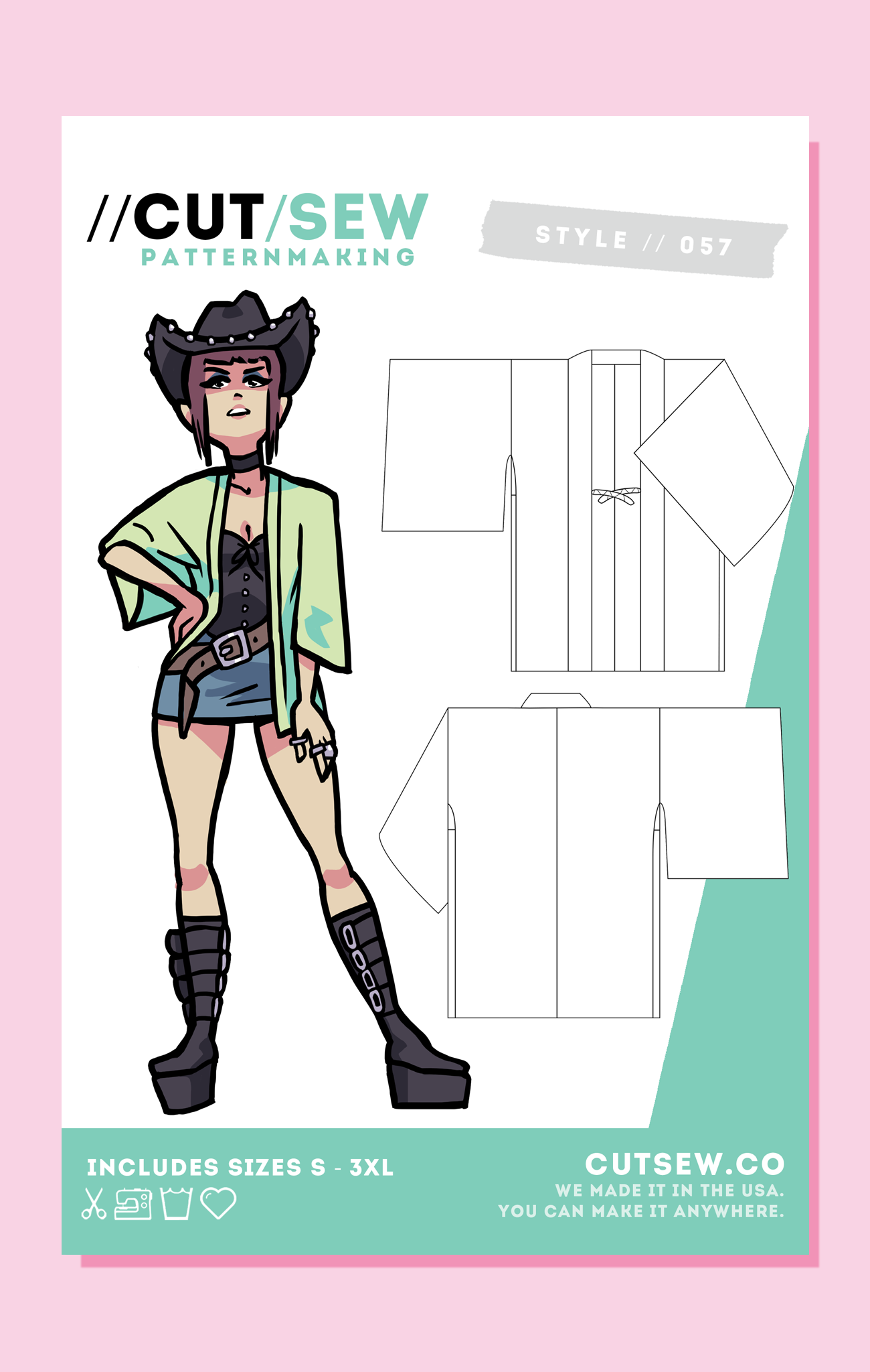 Make every day a summer festival! Based off of the style lines and shapes of traditional Japanese haori jackets, our version features built in center front ties & a cropped length similar to Happi coats for a more stylish, fashion-forward look. Turn it into a cosplay staple or sew it in your favorite fabric for a cute summer look.