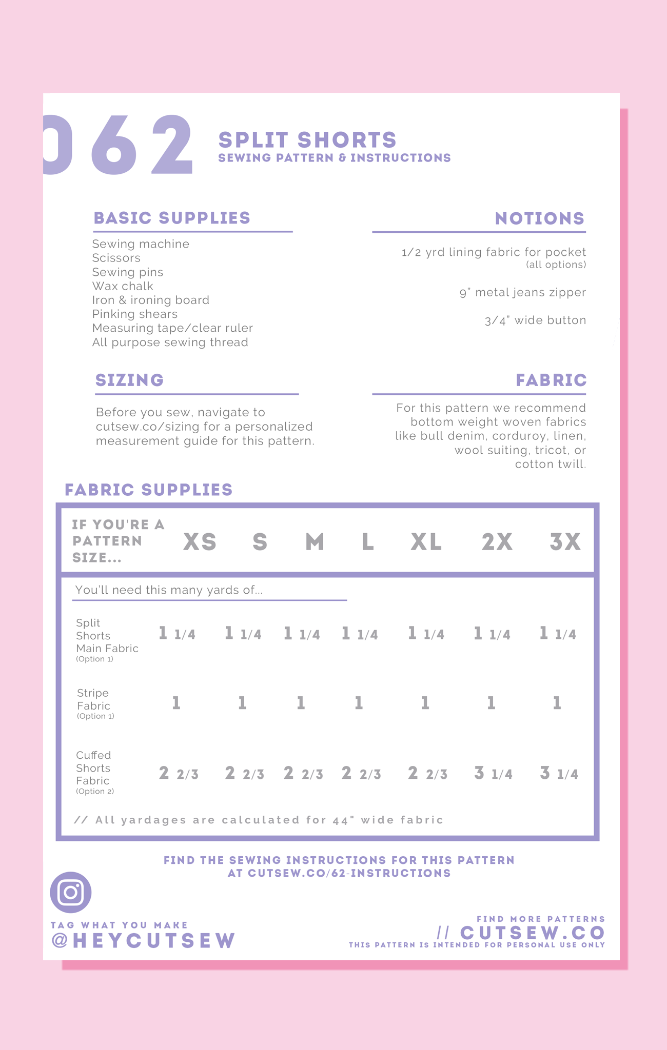 All CUT/SEW instructions are PDF format and feature diagrams for every step, video tutorials for included sewing techniques, and adjustment instructions to help achieve your perfect fit.